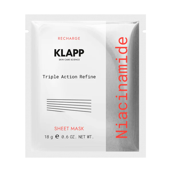Masque en tissu triple action lissant à la niacinamide. Ce masque en tissu triple action lissant, enrichi en niacinamide et en collagène végétal, hydrate la peau et améliore son élasticité. Les rides et ridules sont atténuées, pour une peau visiblement plus lisse et uniforme.
